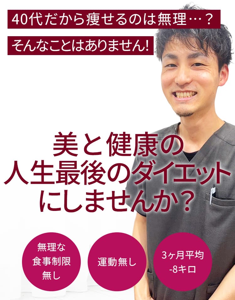 私はダイエット専門の鍼灸整骨院を運営しており、地域の皆様をはじめとする多くの方の施術に携わっています。